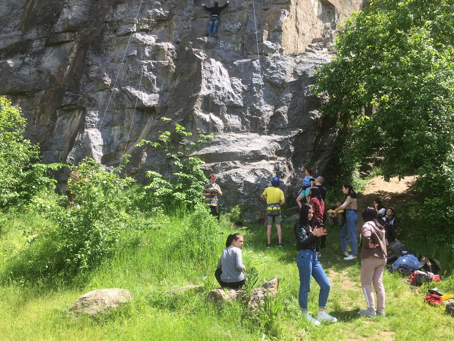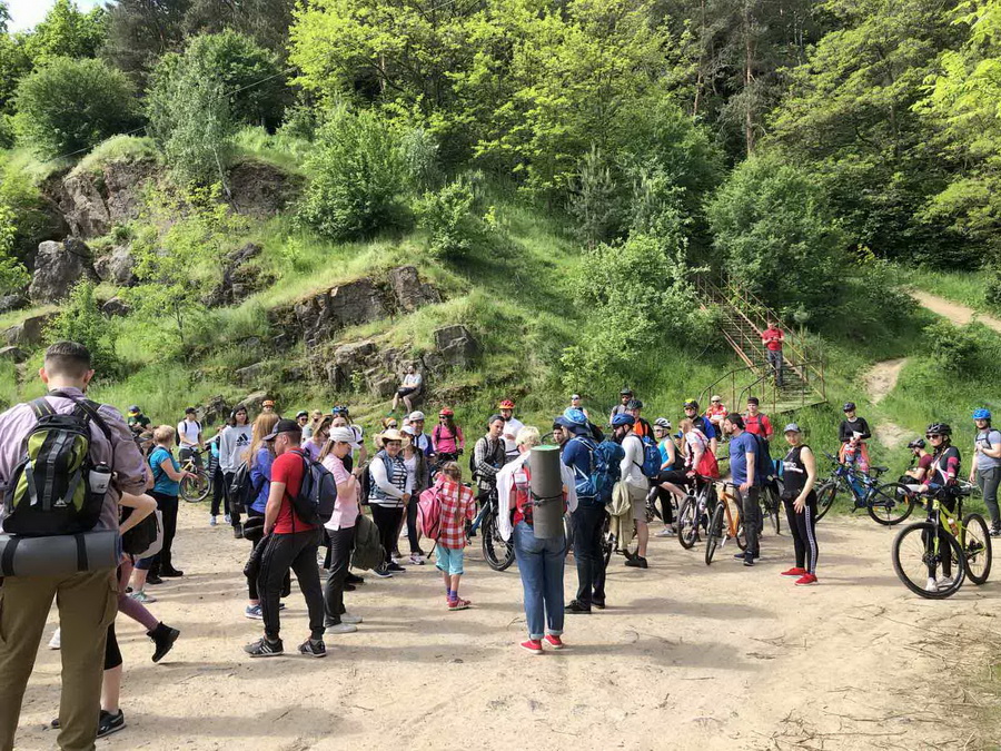 «Перший колективний похід по Camino Podolico вирушив трьома колонами: людей 70 пішли пішки, 30 поїхали на велосипедах і ще така ж кількість пливла на каное.