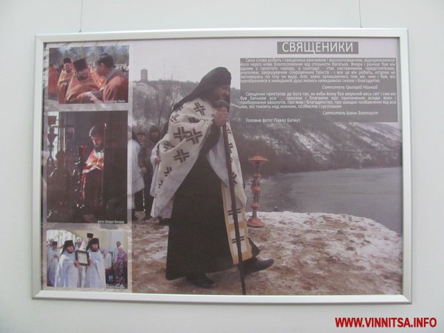 Окрім можливості зазирнути у позаслужбове життя священиків, виставка дає змогу по-новому побачити знайомі храми, повз які вінничани проходять щодня, і відкрити для себе паломницькі місця, яких у області налічується чимало. Своєю величчю і красою вражає усіх гостей скельний Лядівський монастир, який ще у 1013 році у селі Лядова Могилів-Подільського району заснував преподобний Антоній Печерський, який повертався з Афона у Київ. А історія виникнення Долини хрестів поблизу села Голинченців Шаргородського району, дотепер надихає багатьох православних відвідати це місце під час щорічної хресної ходи 15 серпня.