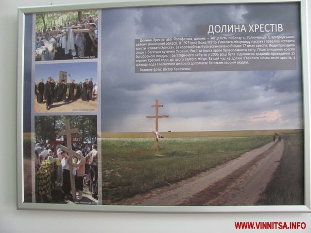 Долина хрестів або Йосафатова долина - місцевість поблизу с. Голинченців Шаргородського району Вінницької області. У 1923 році Божа Матір з’явилася місцевому пастуху і повеліла "ставити хрести і славити Христа". за короткий час було встановлено більше 17 тисяч хрестів, Люди приїздили сюди з багатьох куточків України. Росії та інших країн православного світу. після знищення хрестів богоборчою владою і багаторічного забуття у 2006 році була відновлена традиція проведення 15 серпня Хресної ходи до цього святого місця. За цей час на долині з’явилися кілька тисяч хрестів. а цілюща вода з місцевого джерела допомагає багатьом хворим людям. Головне фото: Віктор Кравченко.