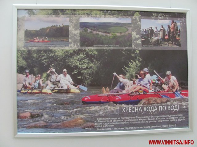 Водна хресна хода на плотах річкою Південний Буг була організована духовенством Вінниці та об’єднанням православних мирян "Канон". Батюшки та парафіяни разом долали труднощі водного шляху, розділяли спільну трапезу і зміцнювали духовну дружбу щирою молитвою. Головне фото - на річних порогах молитва ставала сильнішою (Павло Багмут).