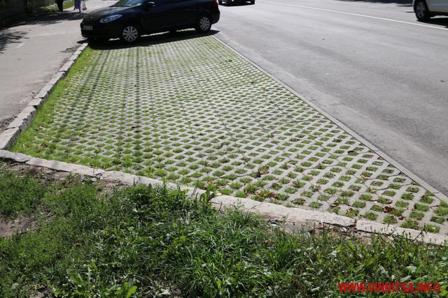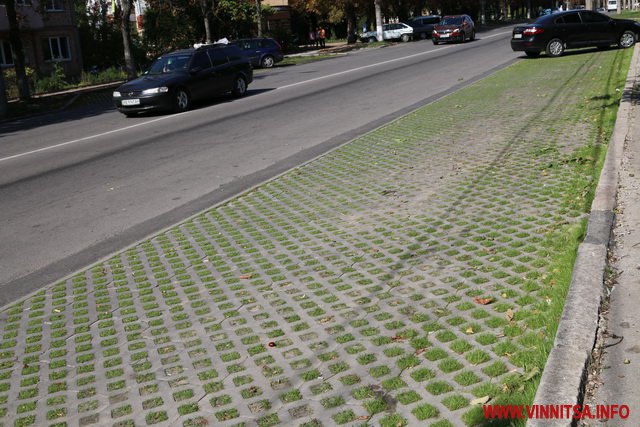 Вінниці по вулиці 600-річчя на початку літа облаштували еко-парковки. Основа їх це спеціальні бетонні решітки, крізь утвори яких має рости трава.
