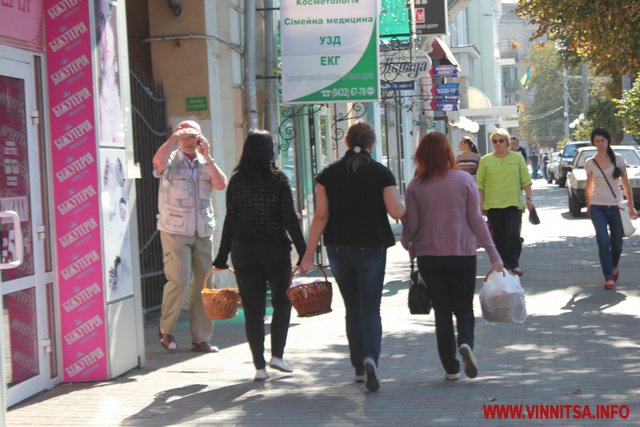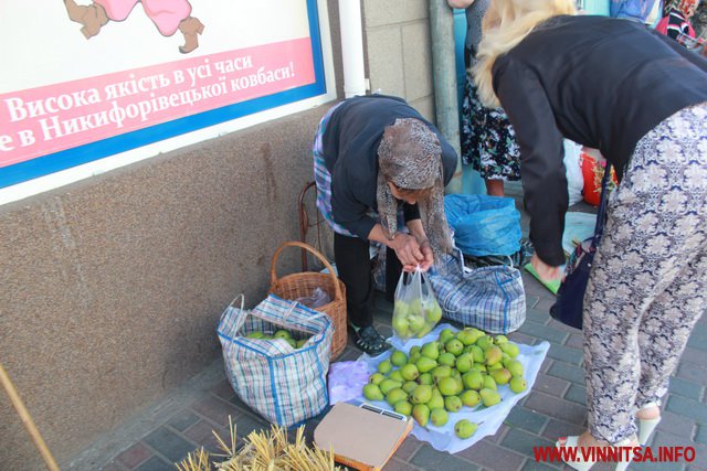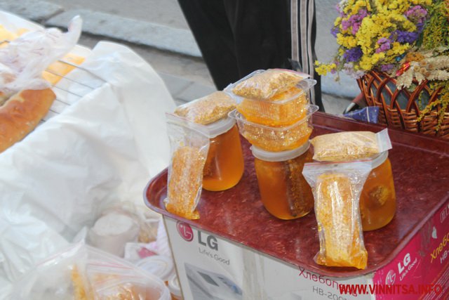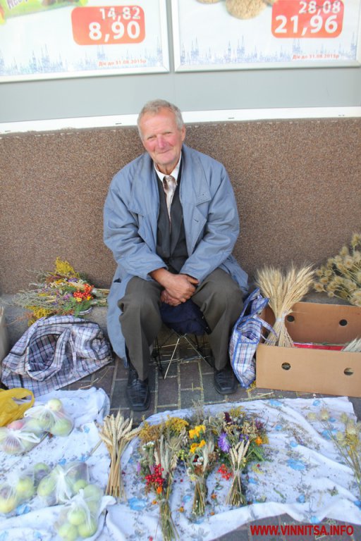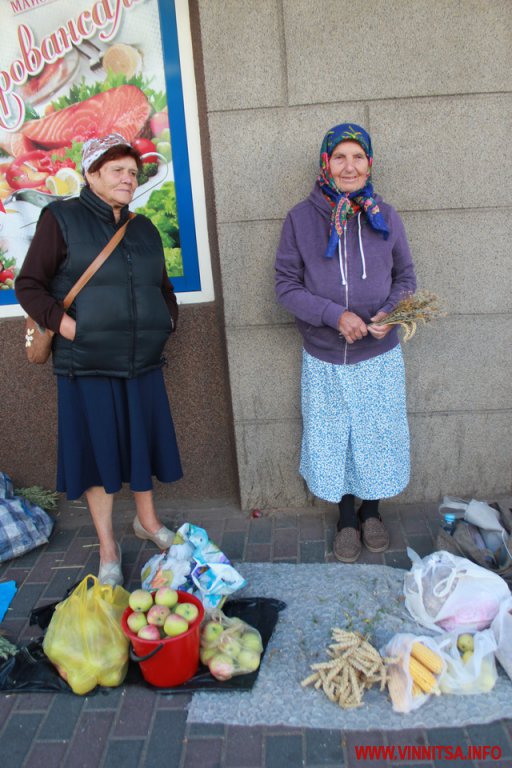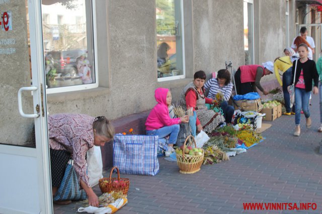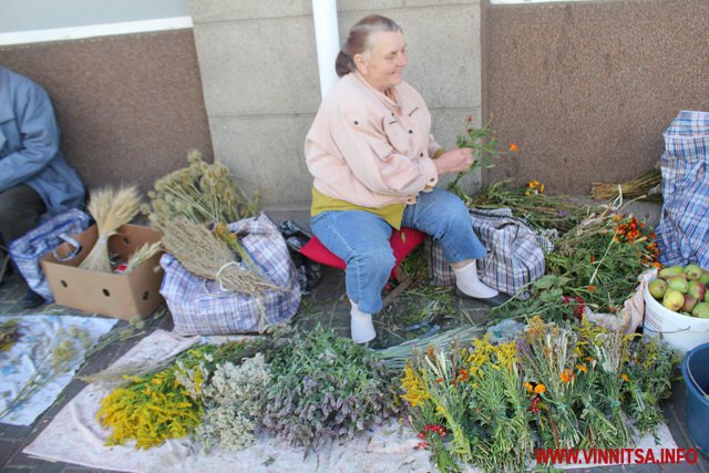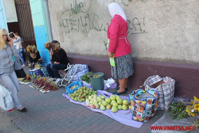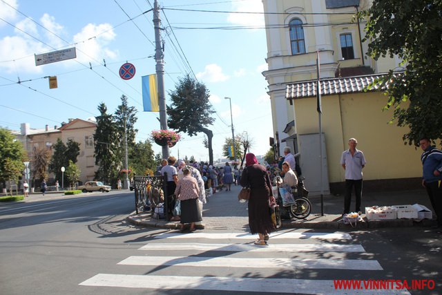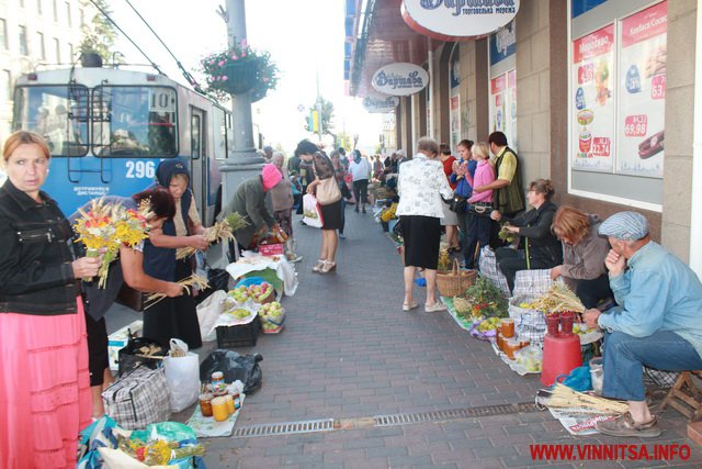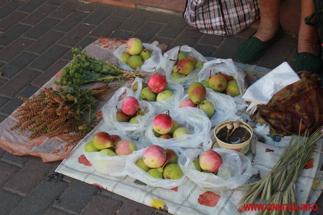 Люди вишикувалися у величезну чергу від собору в сторону Центрального мосту. В цей день вінничани несли до церкви святити яблука, груші, мед, жмути колосся та пшениці, а ще домашні пиріжки та живі квіти. Біля собору все це можна було й прикупити.