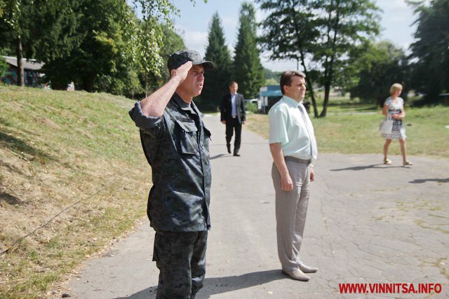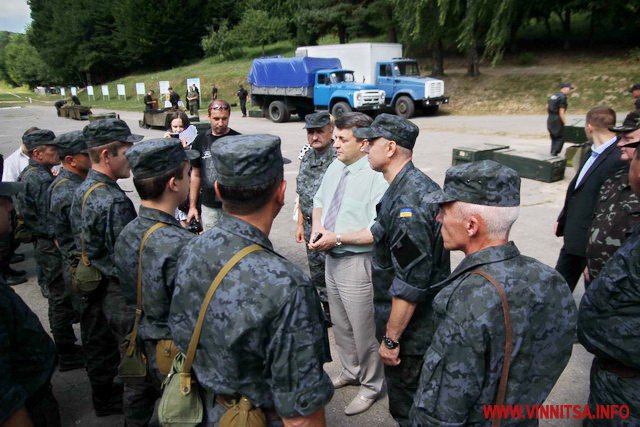 Приїхав до вінницьких "бандерівців" (як їх називають путінські терористи) для вручення зброї голова Вінницької облдержадміністрації Анатолій Олійник.