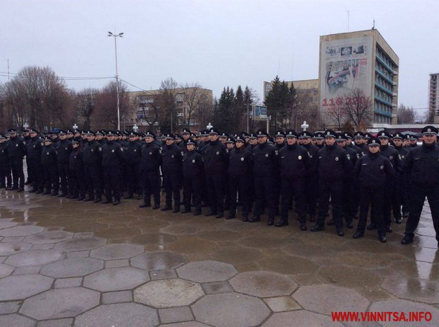 22 лютого об 11 годині нова патрульна поліція Вінниці готується приймати присягу. На площі Стуса вишикувалося 255 «копів», з них 33 жінки та 61 колишній працівник органів внутрішніх справ.