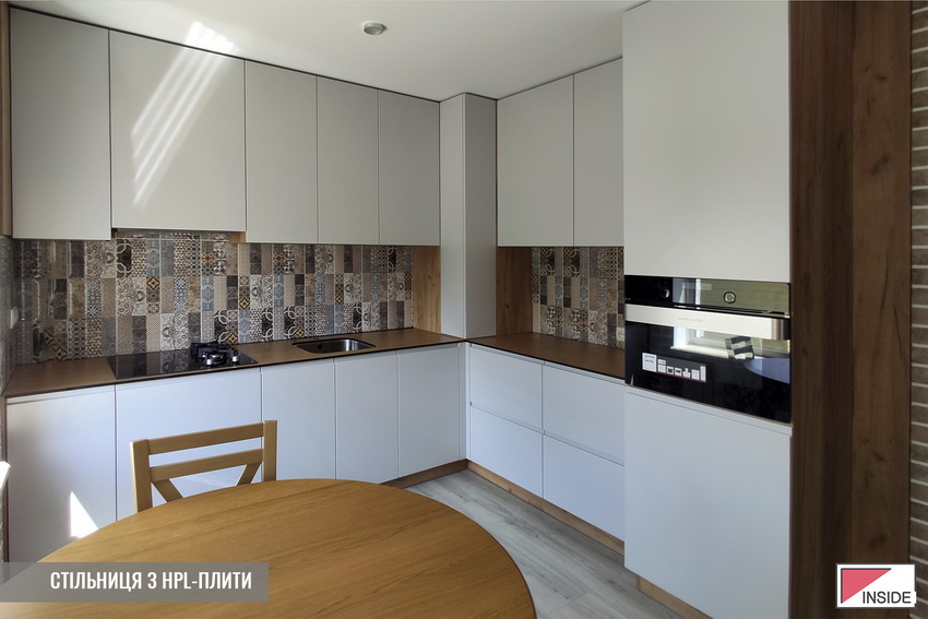 Стільниця з каменю – це вже класика. Стільниця з HPL-плити – новий тренд, який тільки почав завойовувати прихильників. Надзвичайно міцна, стійка до подряпин, не боїться ударів, гарячих каструль і Армагедону ;) Товщина такої стільниці - 12 мм. Дуже стильне і сучасне рішення. Колір внутрішнього ядра (торців стільниці) може бути чорним або сніжно білим. Раніше ви могли зустріти компакт-плиту в вигляді душових перегородок, робочих поверхонь в закладах харчування, барних стійок на заправках та інших місцях нещадної експлуатації. Але з роками виробники розробили класний модельний ряд. Тепер декори під дерево, камінь, однотонні, цікаві фактурні малюнки можна підібрати для затишних та елегантних домашніх кухонь.