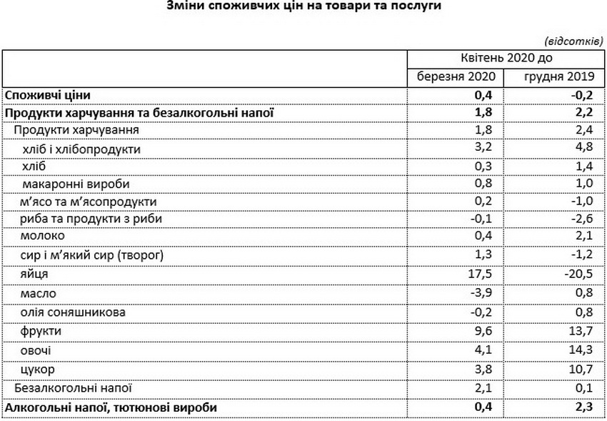 На споживчому ринку області в квітні 2020 року ціни на продукти харчування та безалкогольні напої зросли на 1,8%.