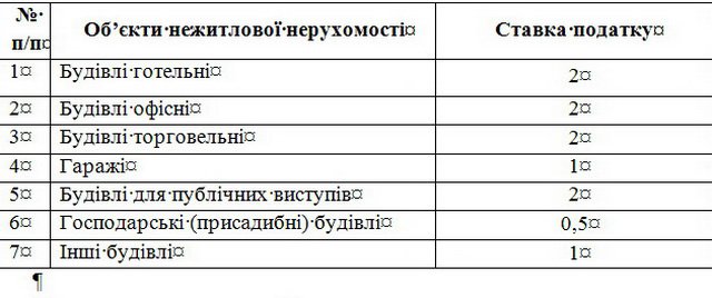 Ставки податку для нежитлової нерухомості (комерційної), за 1 кв.м бази оподаткування:
