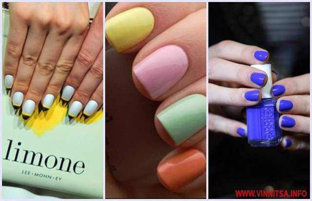 В моді пастельні відтінки лаку від прозорого до насиченого тілесного, коралового, кавового. Лак може бути перламутровим, матовим, з ефектом піску - вибирайте будь-який варіант покриття. Такий манікюр є універсальним, він відмінно підійде як для ділової зустрічі, роботи в офісі, так і вечірнього виходу. Акуратні нігті середньої довжини, покриті непомітним лаком - от що зараз в моді.
