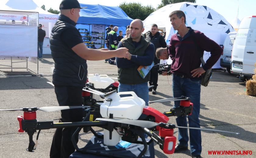І поки агрономи прицінюються, журналісти порівнюють свою літаючу техніку із представленими агродронами. Останні слугують не для зйомки відео, а для обприскування. Один такий велетень може обслуговувати до 3 гектарів за 15 хвилин. Його головна цінність – керувати оператор може на відстані. Більше того, не контактуючи із небезпечною речовиною.