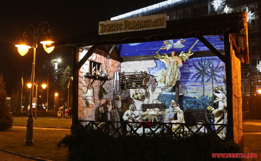 Також на майдані Незалежності традиційно встановили Різдвяний Вертеп. В будиночку – фігурки біблійних героїв. Зокрема – Марії, Йосипа та маленького Ісуса.