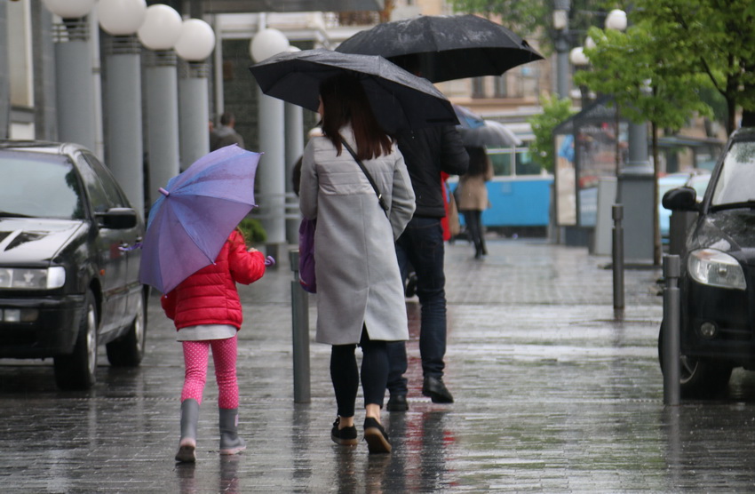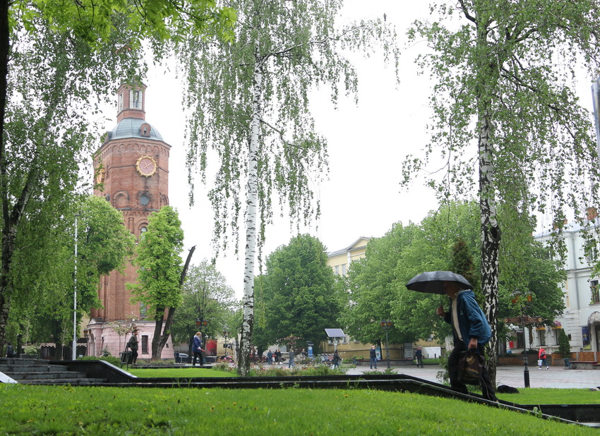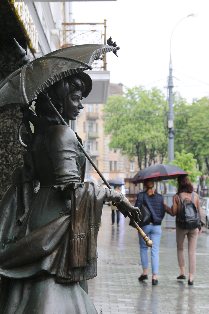 Вінничани поспішають у справах, захищаючись від дощу парасолями. Барвисті зонтики додають позитиву у негоду. В «тренді» сьогоднішньої погоди навіть два пам’ятники, які встановлені в центральній частині Вінниці.