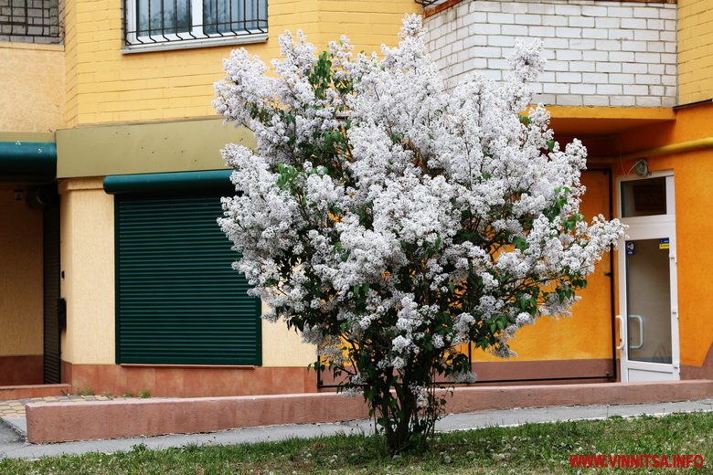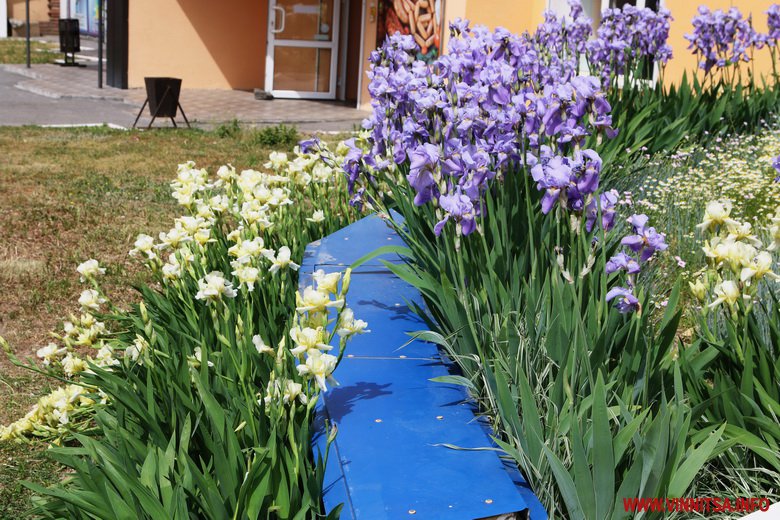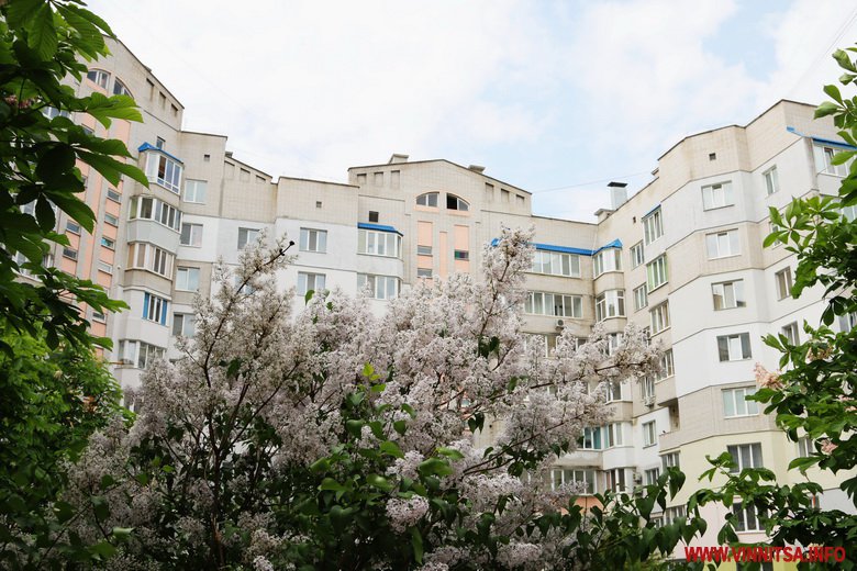 В обід тут малолюдно, більшість мешканців з дітьми біля фонтану. В дворах висоток чисто, доглянуті клумби, квітучий бузок, іриси, петунії.