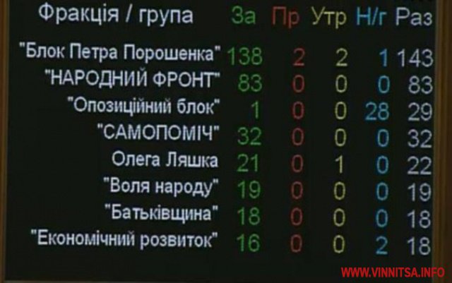 Верховна Рада 341 голосом підтримала обрання Яценюка головою уряду.