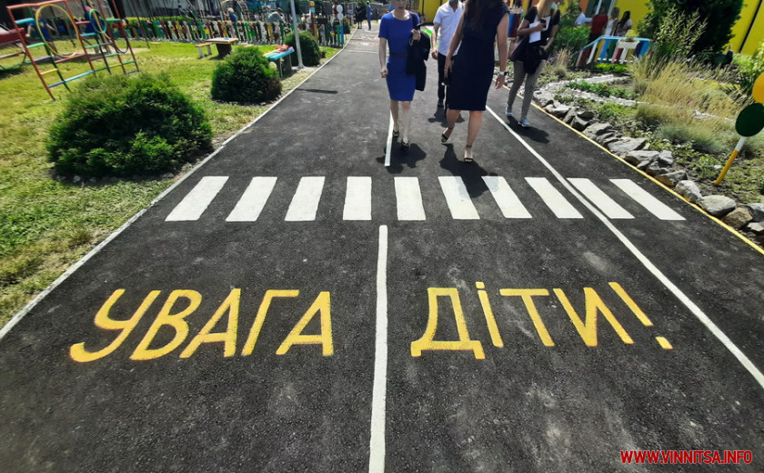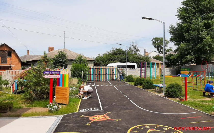 Територія садочка – суцільний інтерактив для дітей. Тут можна вивчити і правила дорожнього руху – як переходити дорогу, де має бути «Стоп» та чому неподалік навчальних закладів наносять «Увага, діти!».