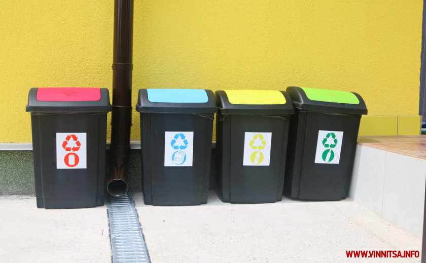 У дитсадочку «Сонечко» дітки навчаються, як сортувати сміття. Для цього біля службового входу поставили маленькі контейнери.