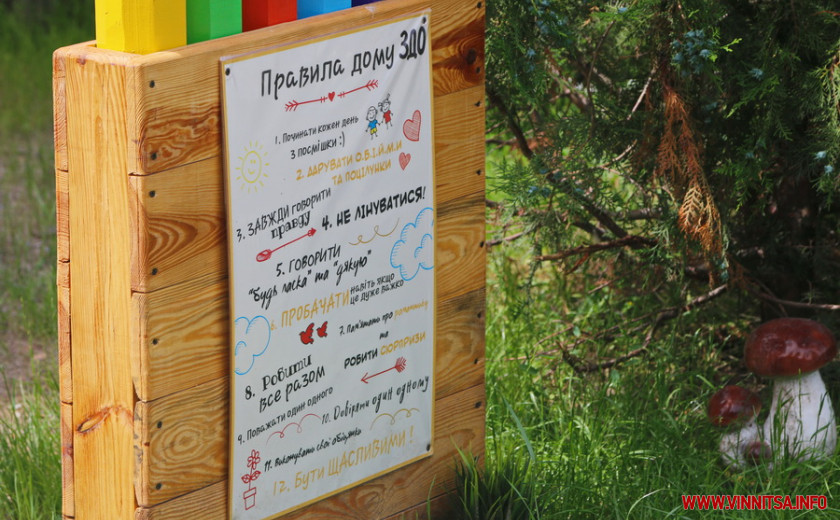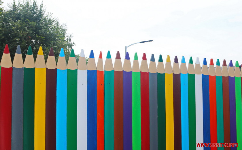 На території встановлені вуличні світильники із сонячними панелями. Також велику увагу приділили декору – тут безліч декоративних рослин, невеличкий газон, місточок. А ворота та паркан – у формі кольорових олівців.