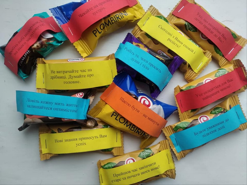 Збираючи благодійні внески, учні пригощали перехожих цукерками, на яких були написані приємні побажання та передбачення. На зібрані кошти було придбано солодощі, які волонтери доставлять у дитячі будинки.