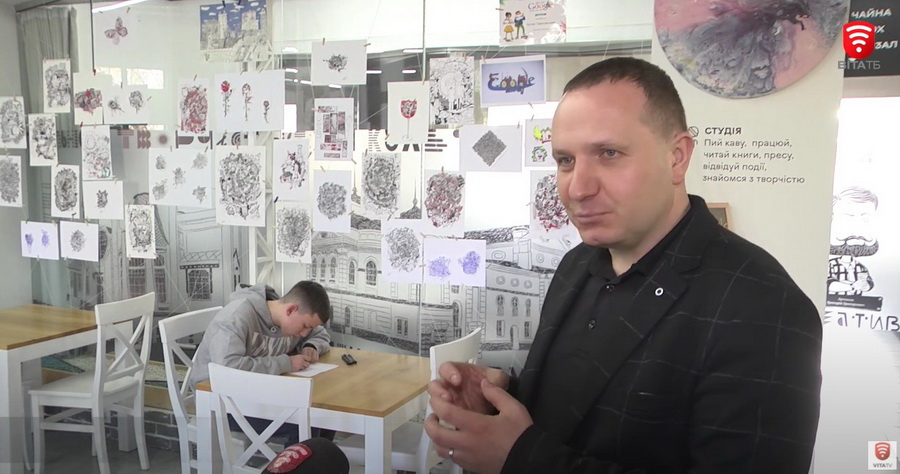 «Можливо, важко комусь зрозуміти, можливо, треба постояти і подумати. Картини нелегкі для розуміння. Артем їх просто проектує на папері. А уже глядач підходить і починає думати про різні речі», – каже Андрій Піжевський, власник приватної школи.