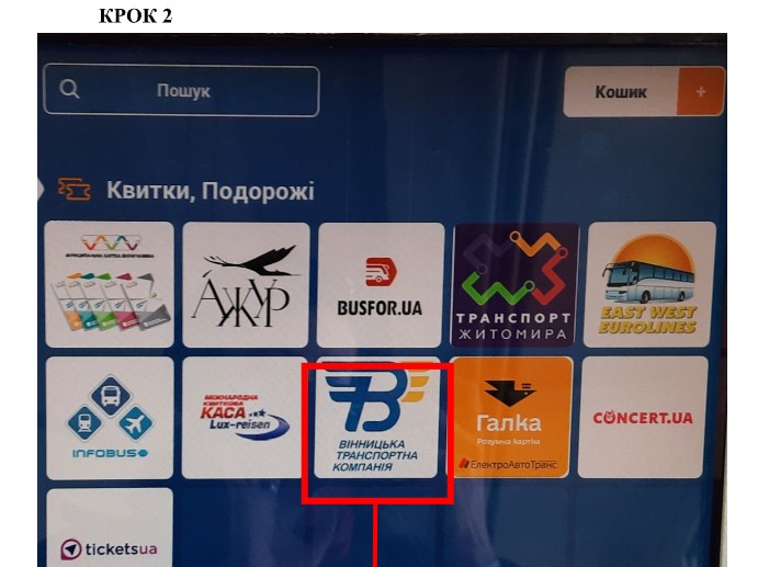 2. Виберіть із переліку іконку «Вінницька транспортна компанія»;