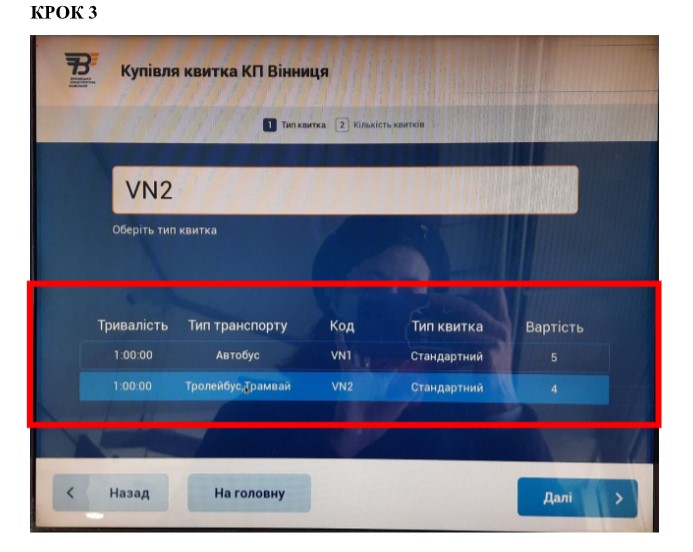 3. Оберіть вид транспорту, який вам потрібний, натиснувши на дисплей та перейдіть до наступного кроку;