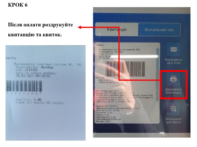 6. Після оплати роздрукуйте квитанцію та квиток.