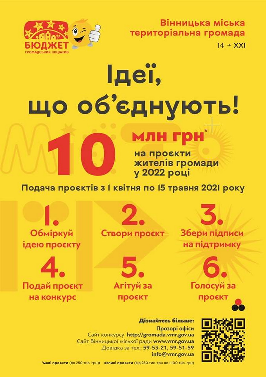 «Учора, 25 березня на виконавчому комітеті міської ради прийняте рішення про проведення в 2021 році конкурсу «Бюджет громадських ініціатив», який у Вінницькій міській територіальній громаді реалізовуватиметься вже всьоме. Жителі зможуть подавати власні ідеї до Вінницької міської ради протягом 45 днів: з 1 квітня до 15 травня (включно), а проєкти-переможці будуть втіленні в життя муніципалітетом у наступному 2022 році.