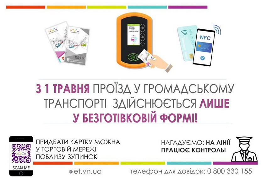 З 1 травня громадський транспорт Вінниці переходить на безготівкову оплату проїзду.