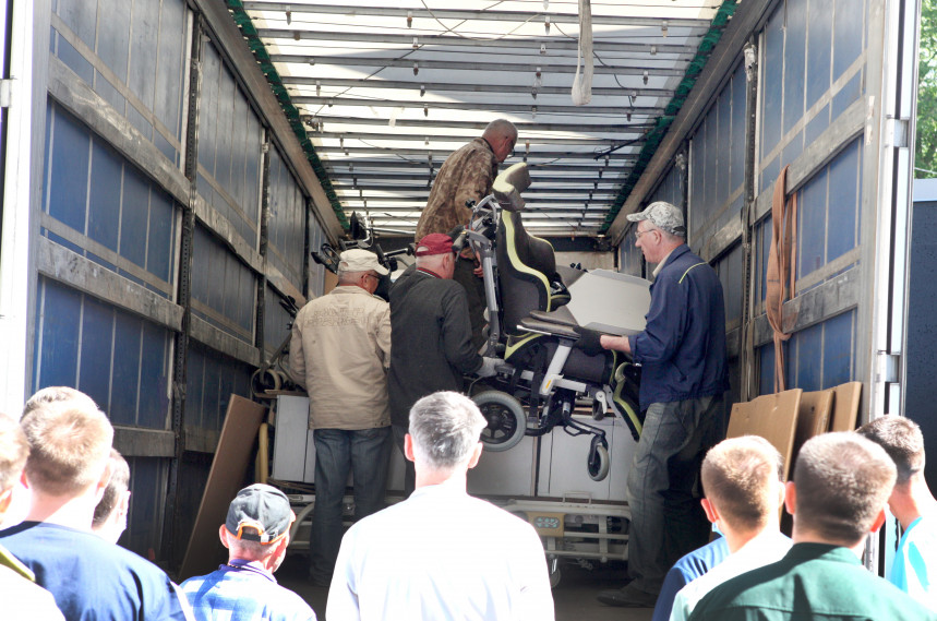 «Сьогодні ми розвантажуємо 2 великих вантажних автомобілі, а це майже 40 тонн допомоги – переважно медичні меблі, засоби реабілітації та догляду. Той ліжковий фонд й обладнання, які у нас є, розраховані на мирні часи й зараз потребують підсилення. Вантаж, який надійшов до Вінниці - суттєво покращить умови лікування важких пацієнтів. Тому ці медичні меблі необхідні», - говорить директор департаменту охорони здоров'я вінницької міської ради Олександр Шиш.