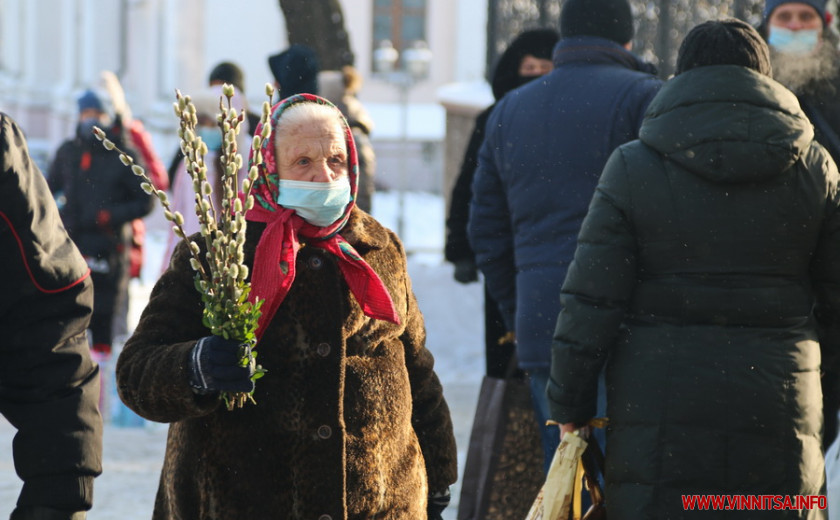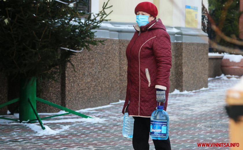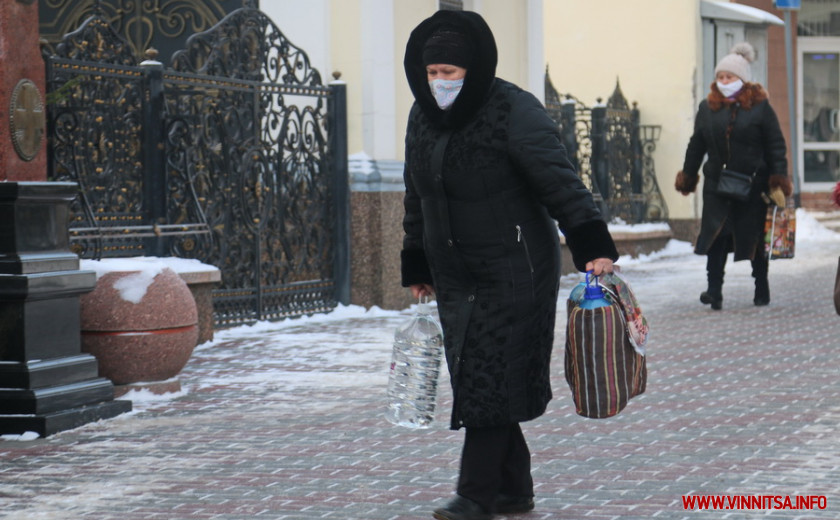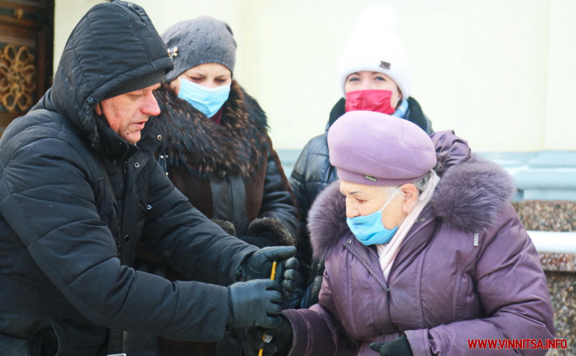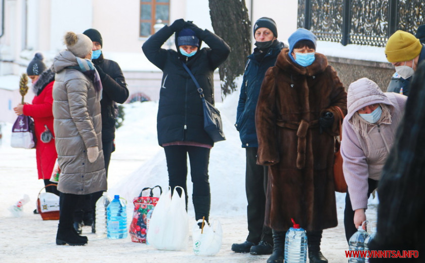 Вінничанин Анатолій Гук каже, що попри мороз прийшов до храму, щоб освятити воду. До приміщення не заходить, каже, що не хоче бути у великому натовпі людей, бо дотримується карантину.