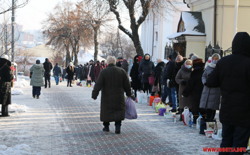 19 січня із самого ранку у Спасо-Преображенському соборі розпочалося богослужіння із освячення води. Попри «скрипучий» мороз до -21, вінничани збираються біля храму.