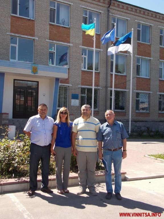 У день приїзду до м. Липовець президента Асоціації українських організацій Естонії Володимира Паламаря та автомобіля з гуманітарним вантажем біля приміщення райради та адміністрації поруч із прапором України та Євросоюзу замайорів і прапор дружньої Естонії.