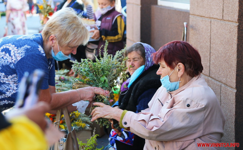 Хтось прийшов з кошиками, в якому були також яблука і грушки. Усі тримали в руках різнокольорове сухоцвіття: поєднання макових голівок із колосками, соняшники і лаванда, м’ята, чебрець, чорнобривці. Прикрашали букетики також калиною і яблучками.