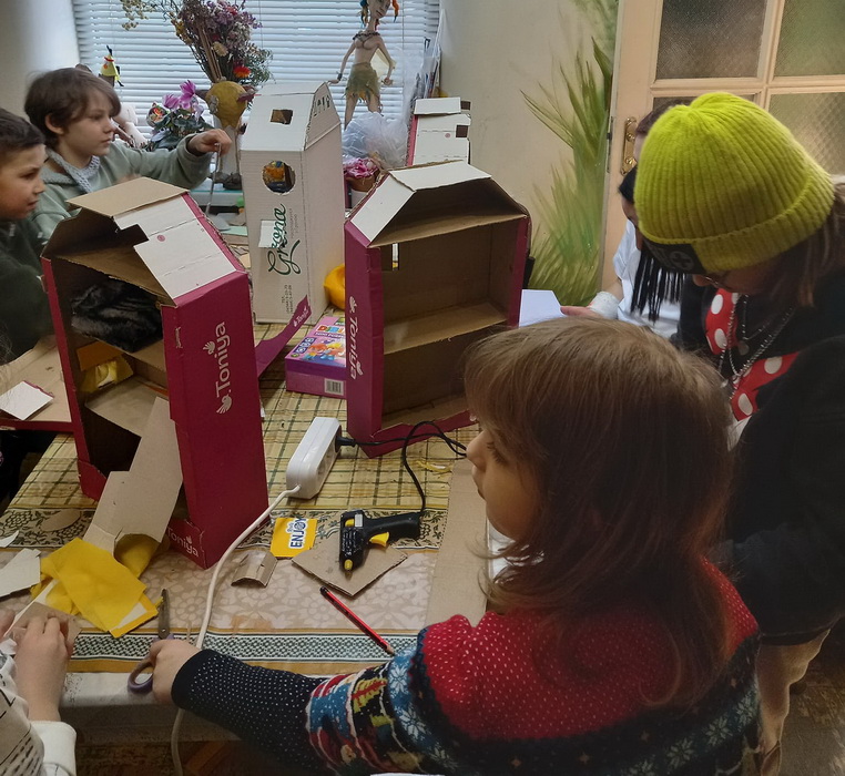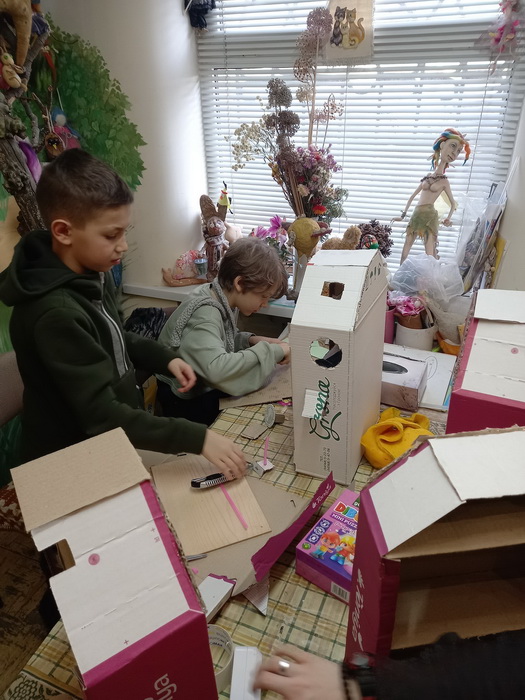 «Незабаром нам знадобиться багато будувати. Ми вже готуємось. Наш будівельний матеріал коробки, папір, клей, ножиці, світлі голови та золоті ручки). А з фантазією у нас все гаразд», - розповіла очільниця творчої майстерні Наталія Стпанюк.
