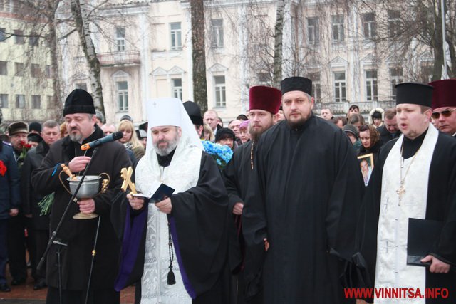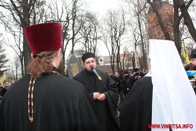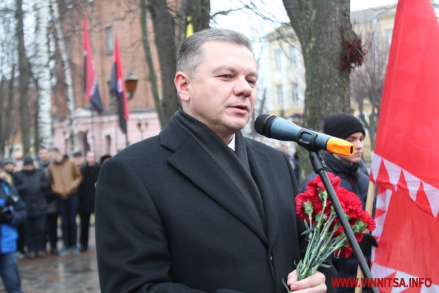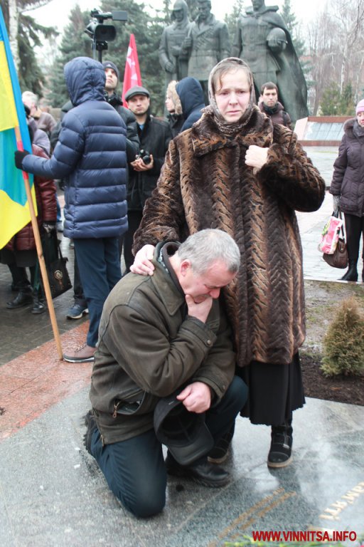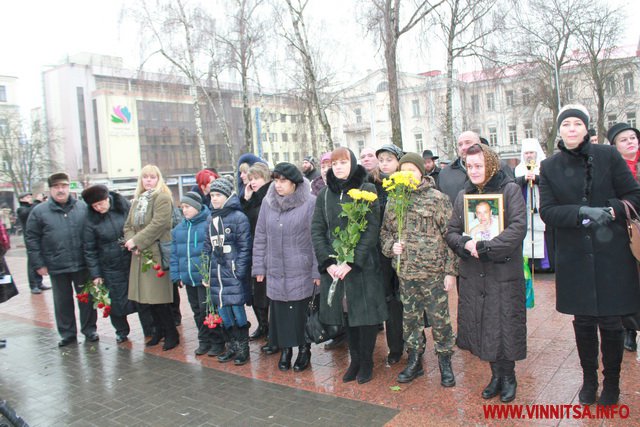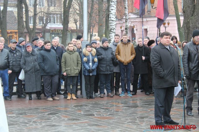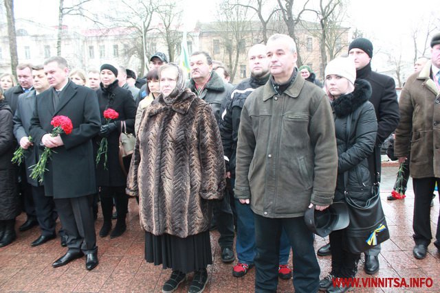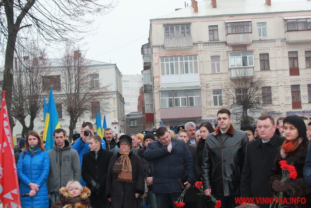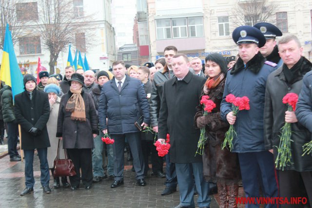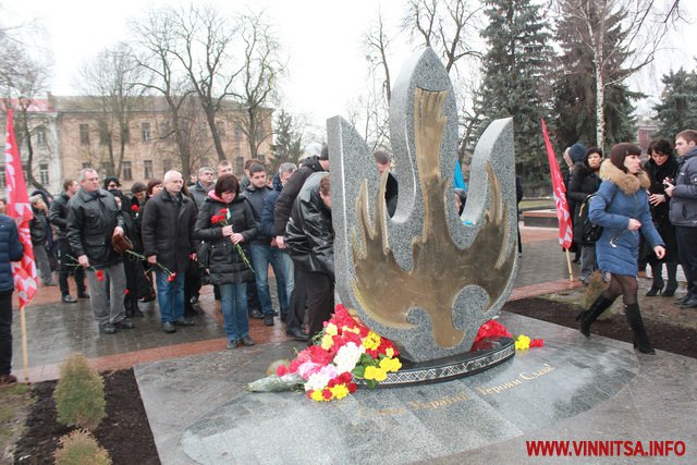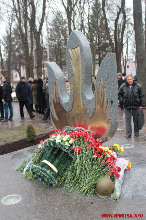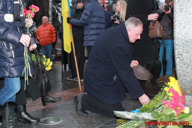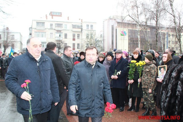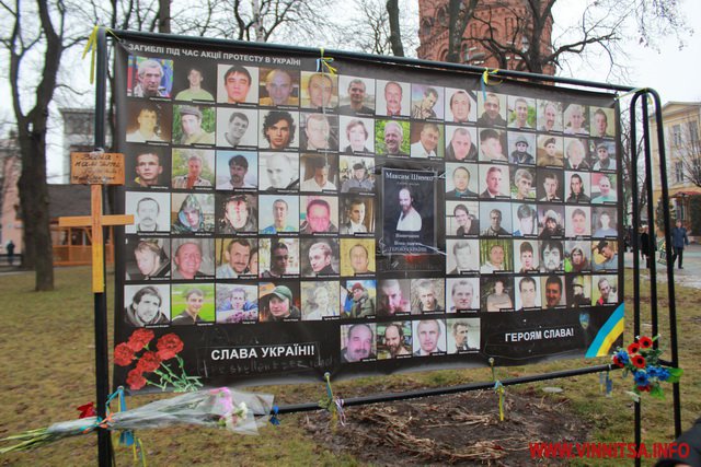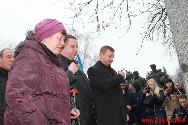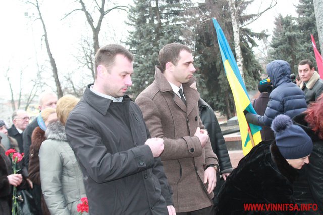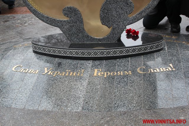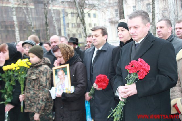 В.о. Вінницького міського голови Сергій Моргунов подякував всім, хто прийшов вшанувати пам'ять Героїв небесної сотні та Героям, які загинули на Сході, боронячи нашу державу від ворога. «Минулого року ми дали обіцянку батькам Максима Шимка, що після буремних подій січня - лютого 2014 року ми встановимо пам’ятний знак Героям Небесної Сотні. Але тоді ми не знали скільки буде сумних звісток зі сходу України, де полягли наші хлопці...», - сказав С. Моргунов та після хвилини мовчання в пам'ять за загиблими додав що до пам’ятного знаку завжди будуть приходити люди, тут завжди будуть свіжі квіти, у пам'ять тих хто загинув за нашу волю і незалежність.