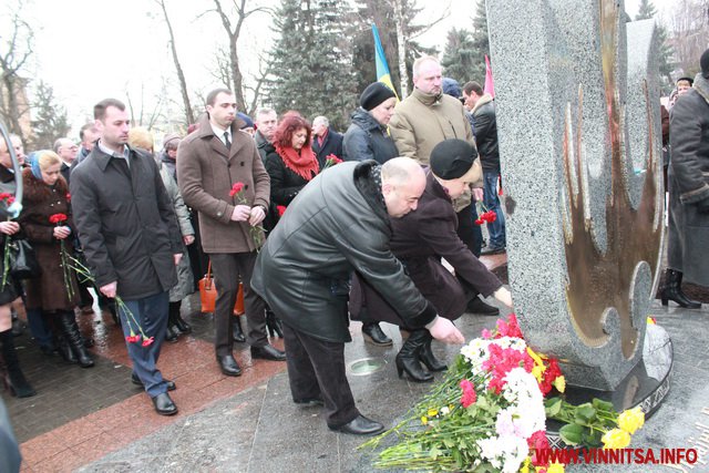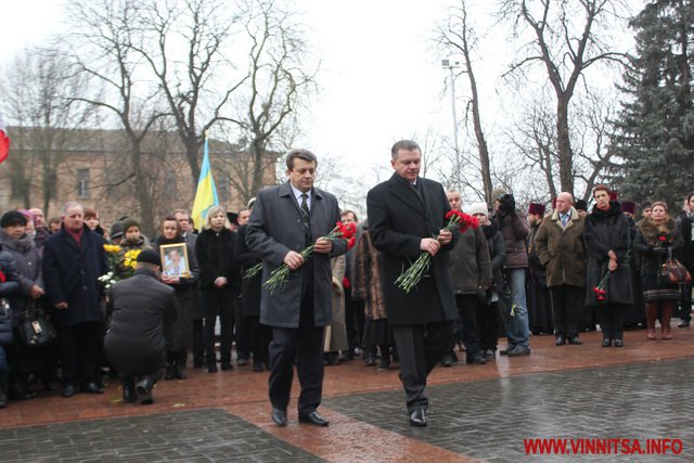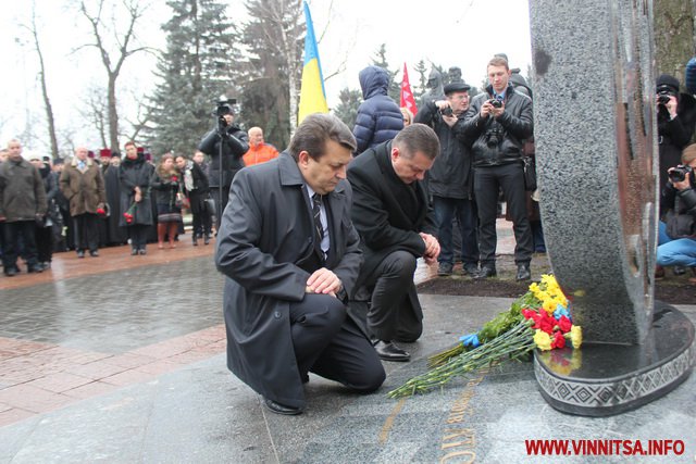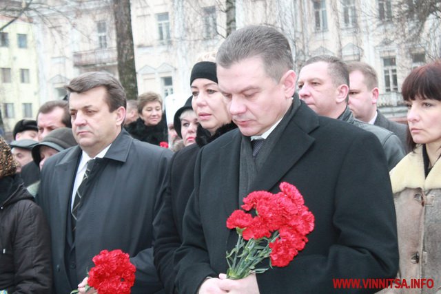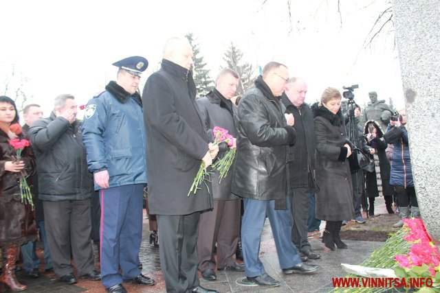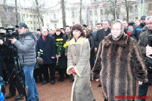 Під пісню «Пливе кача» зі сльозами на очах вінничани поклали квіти до пам’ятного знаку.