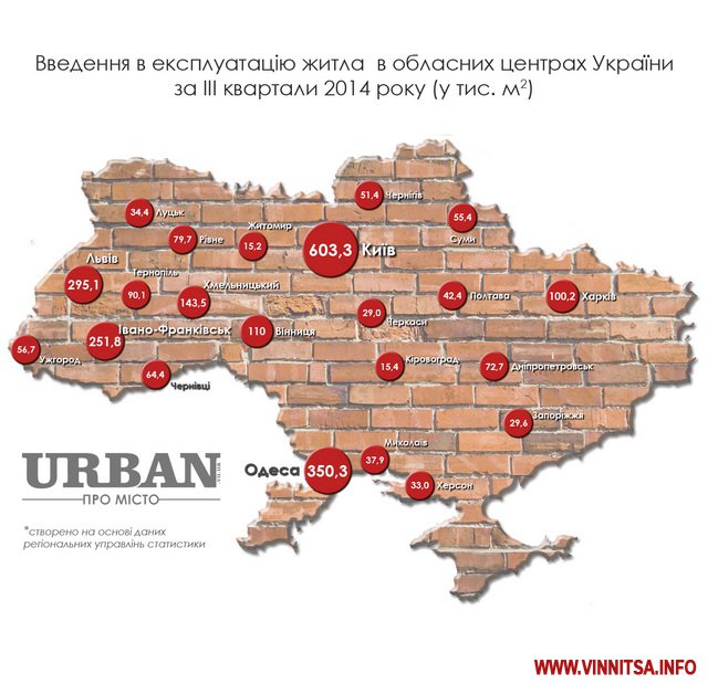 Вінниця серед інших міст України також показує хороший результат у будівництві житла. За результатами ІІІ кварталу 2014 року у місті здано 100 тисяч квадратних метрів житла.