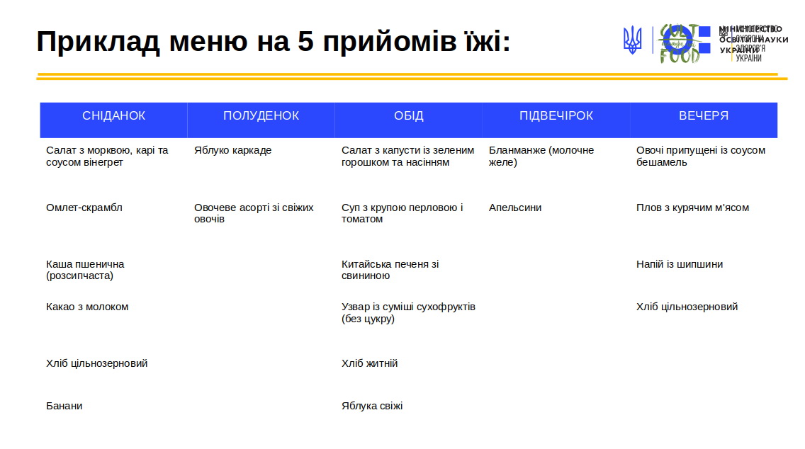 Меню планують впровадити з 1 вересня наступного навчального року.