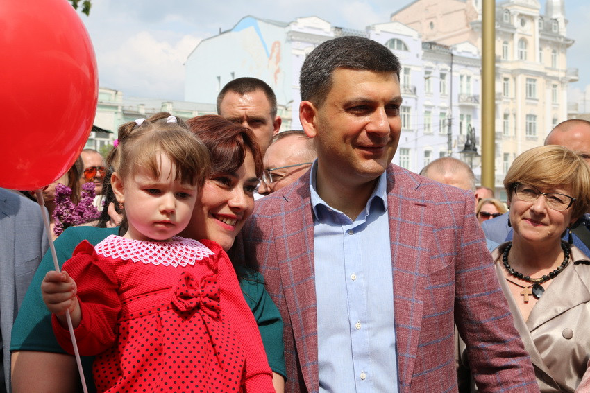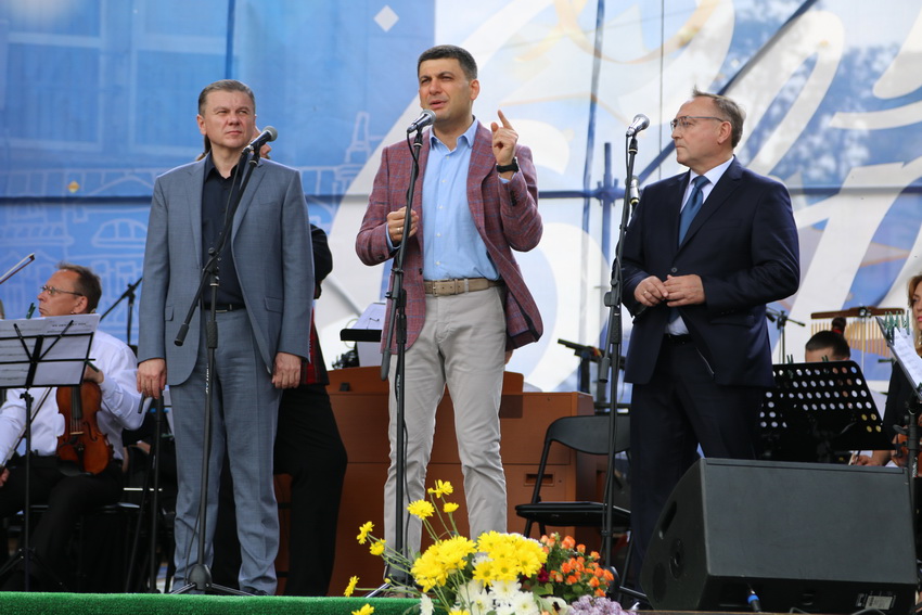Після урочистостей, Гройсман, Коровій і Моргунов пішли розглядати локації святкового міста та робити фото з вінничанами.