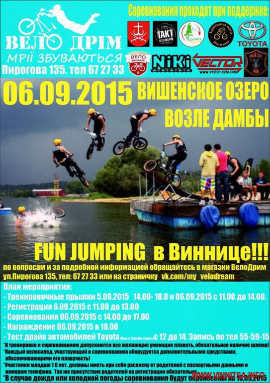 6 вересня на Вишенському озері усі бажаючі стрибатимуть на велосипедах зі спеціального трампліну у воду.