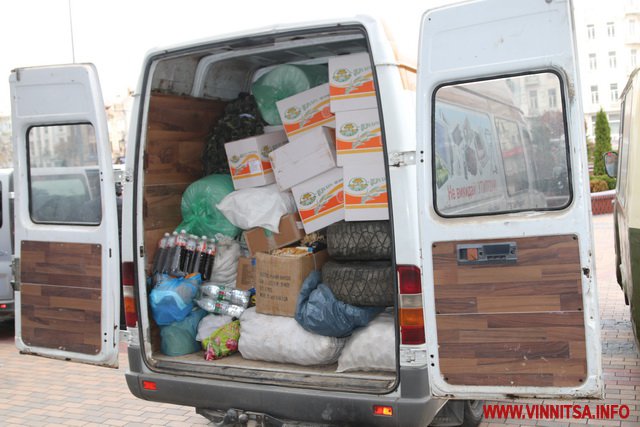 28 жовтня з Вінниці на Схід поїхав черговий гуманітарний вантаж. Це продукти харчування, одяг, рукавиці, балаклави, запчастини для автомобілів тощо. Загалом – близько 3 тон. Також на передову волонтери везуть для бійців автомобіль УАЗ 3303.