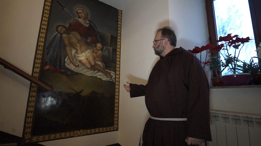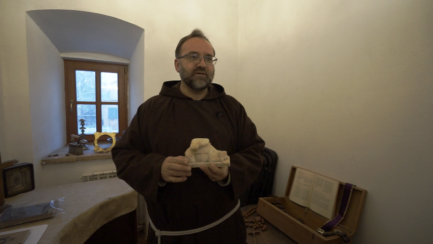 «Ці слова є для нас певним заохоченням, мовляв, ти входиш в святую-святих, впади на коліна і служи Богу. Чому це приміщення називається «монашим хором»? Колись монахи сідали тут обличчям один навпроти одного. Був перший хор і другий хор. Монахи читали псалми поперемінно, антифонно: перший хор, потім другий хор, перший хор – другий хор. Колись в давнину не кожен ченець мав книжку, тому по центрі цієї кімнати стояв такий дерев’яний п’єдестал, з обох сторін якого ставили великі книжки, з яких могли читати всі. Таким чином монахи молились. До сьогоднішнього дня ця кімната є немов продовженням храму, є виділеною його частиною для молитви братів капуцинів».