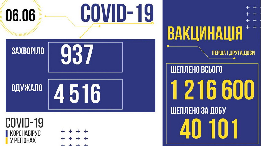 У Вінницькій області, станом на ранок 6 червня, виявили 16 нових випадків захворювання на коронавірус. За добу помер один пацієнт. Одужали – 102. В регіоні вчора провели 1499 вакцинацій. В Україні за добу одужали 4516 людей. Захворіли – 937. Померли – 42. Щеплено за минулу добу першою дозою 39229 осіб.