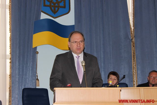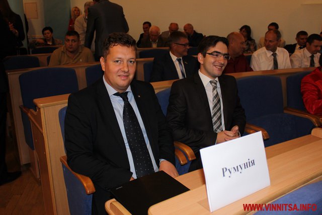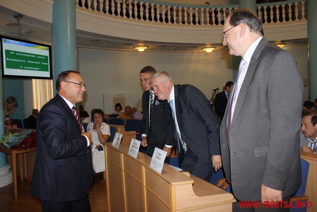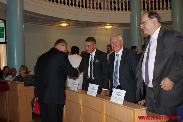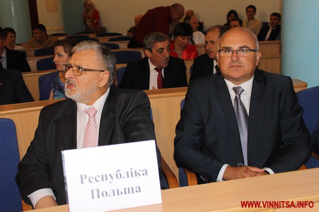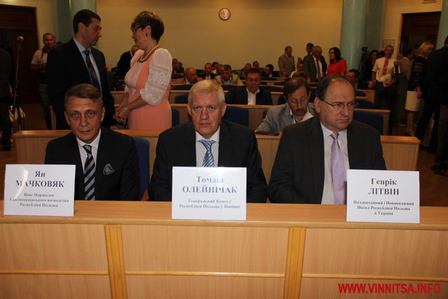 Потім голова Вінницької облради Сергій Свитко представив присутнім гостей, які прийняли участь в урочистій сесії це: Надзвичайний і Повноважний Посол Республіки Польщі в Україні Генрик Літвін, Генеральний Консул Республіки Польща у Вінниці Томаш Олейнічак та Віце-Маршалек Свьєтнтокшиського воєводства Республіки Польща Ян Мачковяк. В залі також були присутні закордонні делегації з Румунії та Молдови.