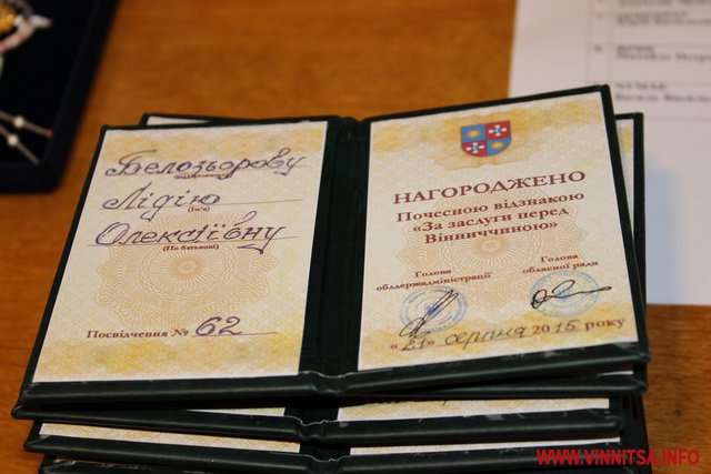 21 серпня відбулося позачергове урочисте засідання сесії обласної Ради. Дев'ятьох вінничан нагородили почесною відзнакою «За заслуги перед Вінниччиною».