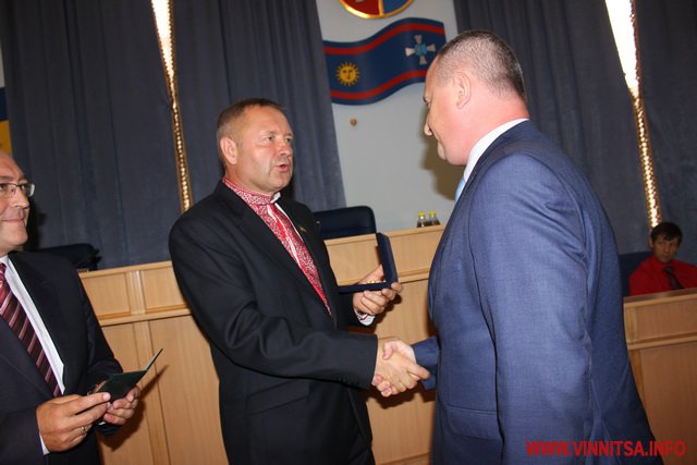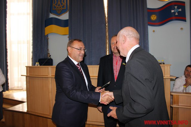 В урочистій обстановці Вінничанам вручили відзнаку «За заслуги перед Вінниччиною». Михайла Фрика буде нагороджено на наступній сесії, який по стану здоров'я не зміг бути присутнім.