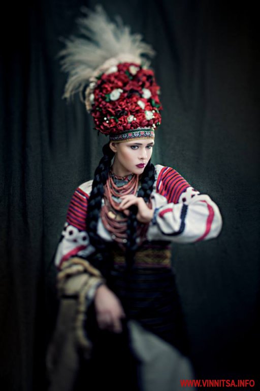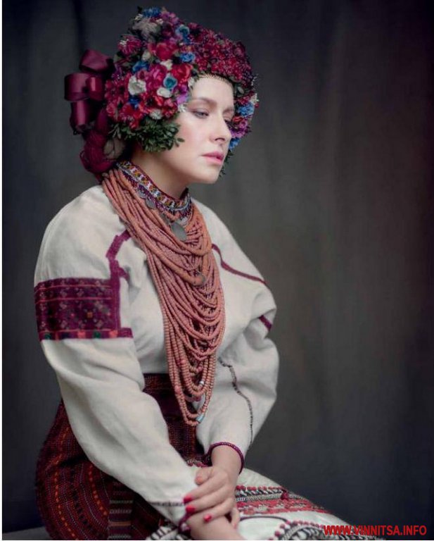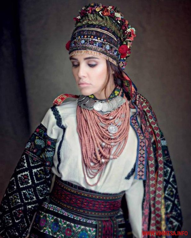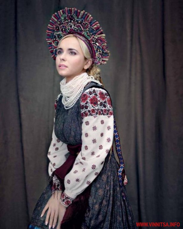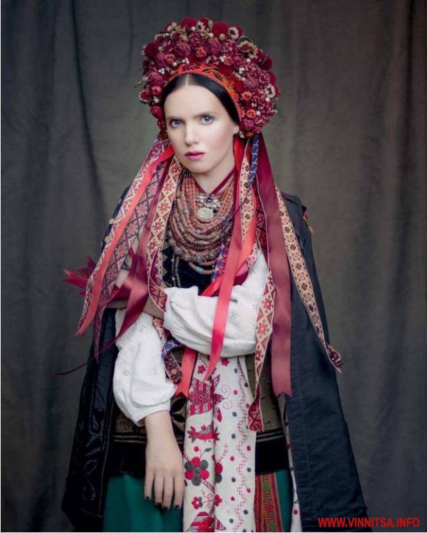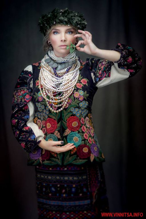 Весільний стрій Полтавщини. Його особливість — рушник із вишитим «деревом життя». Прикраси — коралі зі срібними вставками, намисто з венеціанського скла, дукач із бантом. Вбрана Яніна Соколова.