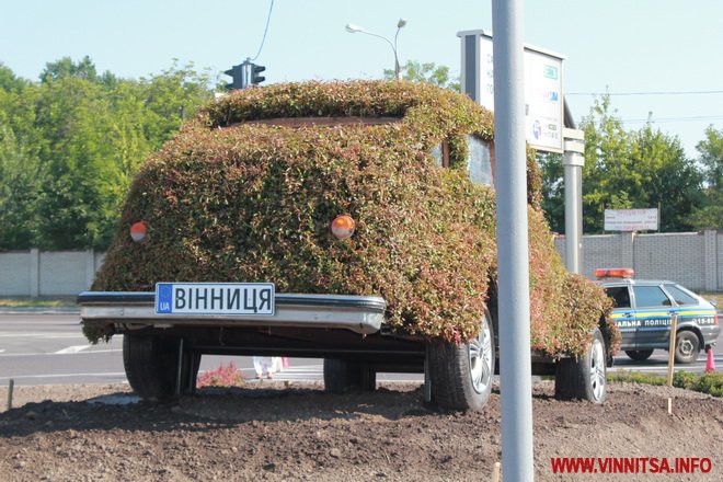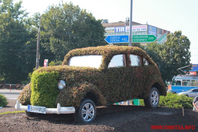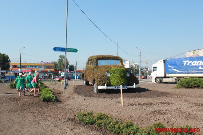 На в’їзді до Вінниці із західного напрямку встановили клумбу у формі автомобіля «Opel Olimpia» 1935-1970 років випуску. Клумба формою аналогічна «Oпелю», але за розміром – вдвічі більша.