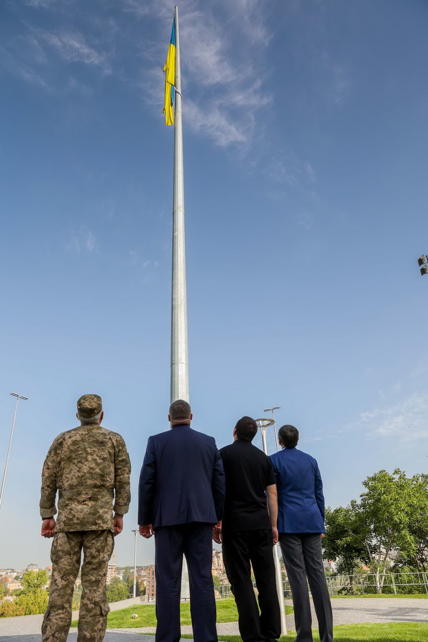 «У присутності Президента України Володимира Зеленського було піднято найбільший прапор країни, розташований на території Меморіального комплексу «Національний музей історії України у Другій світовій війні» в Києві. Урочисте підняття відбулося в супроводі військового оркестру. Пролунав Державний гімн. Рота почесної варти пройшла маршем», - повідомляє Офіс президента.