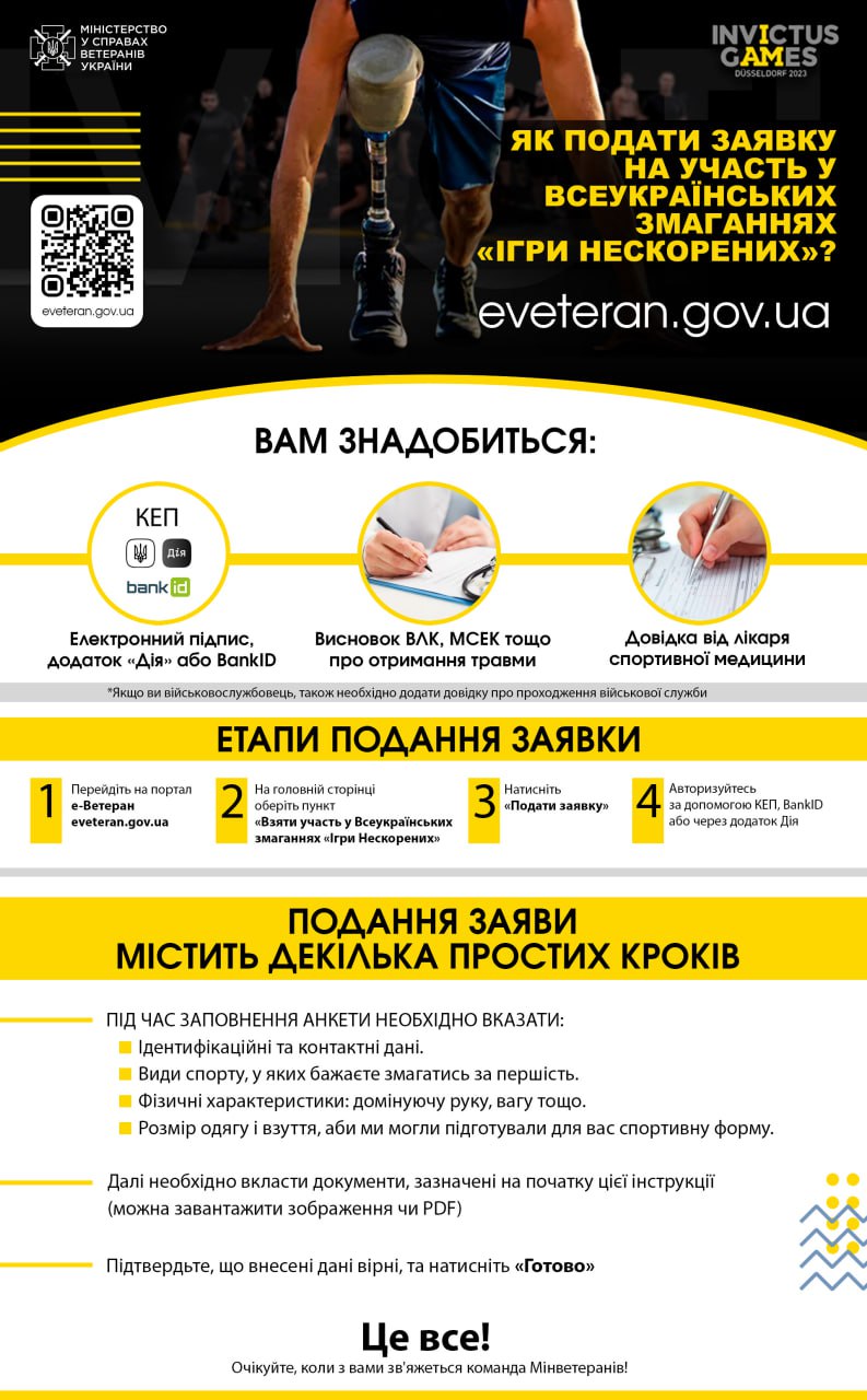 В Україні триває реєстрація кандидатів до участі у Всеукраїнських змаганнях «Ігри Нескорених». Прийом заявок продовжено до 21 березня включно.