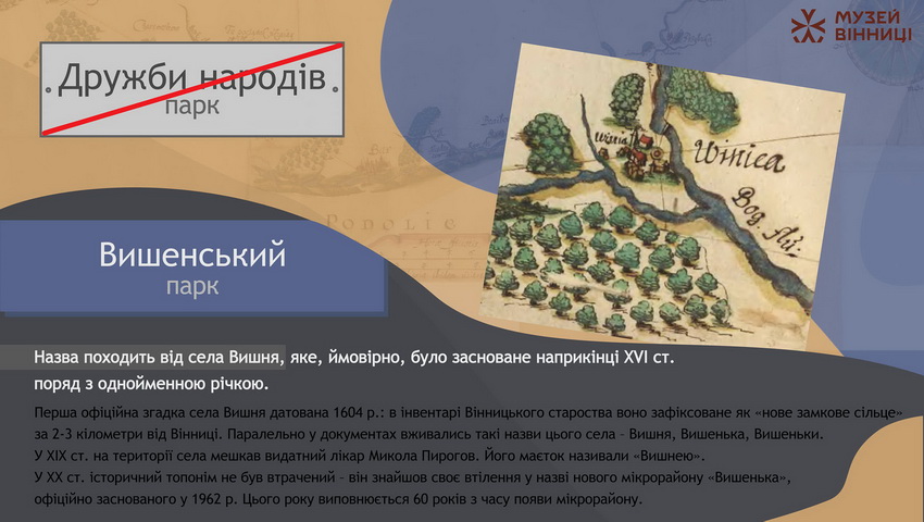 Парк «Дружби Народів» - «Вишенський». Бо ніякої дружби народів немає, як показали реалії сьогодення. А Вишенька, була, є і буде.
